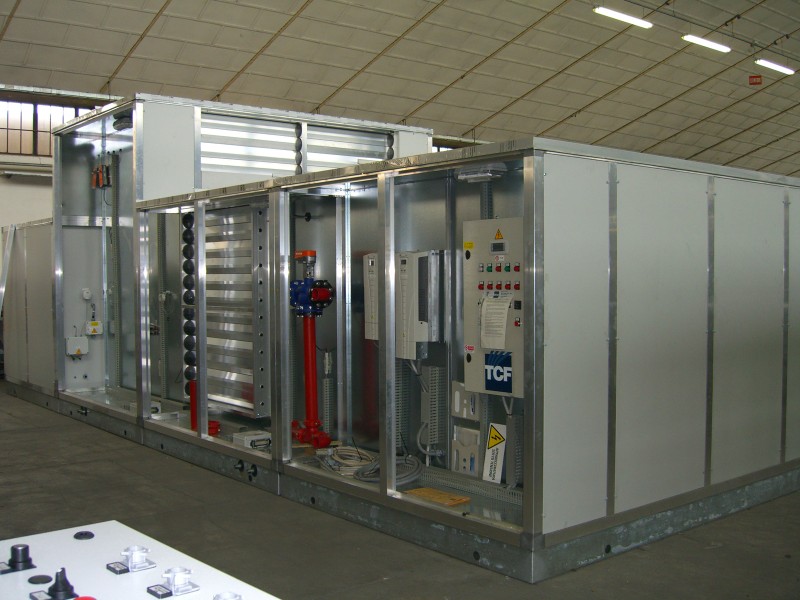 For the ventilation of the sports centre one AZ air-handling unit has been used, equipped with cross-flow plate heat recovery unit and complete with control board, installed outside the new Sports Palace in Noicàttaro (Bari), thus complete with outdoor weatherproof canopy.