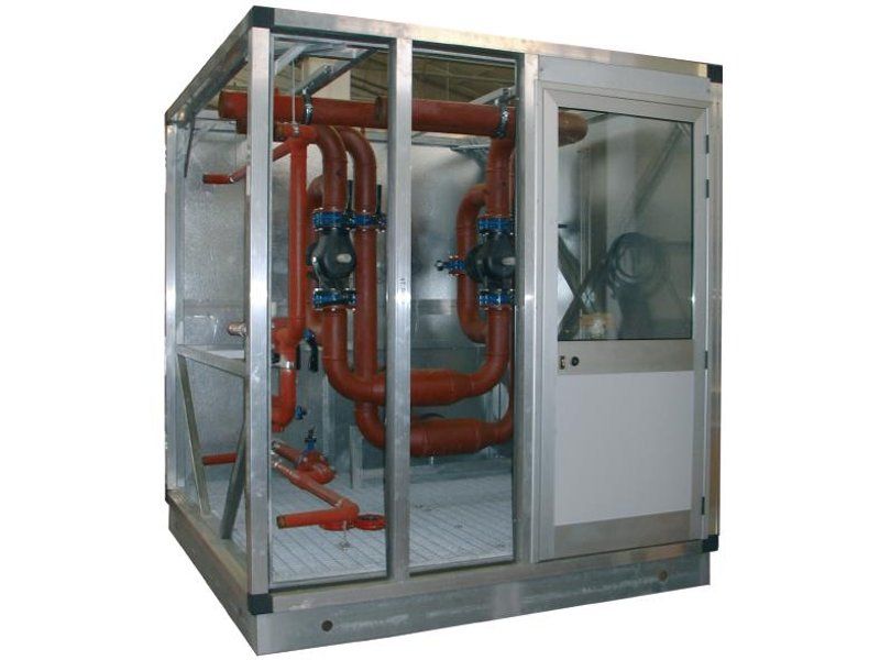 The supply of ZAE air-handlers may be completed with a wide range of accessories and customisations, among which technical cabinets to combine with the electrical and hydraulic parts of the unit, which might as well include water pipes and recirculation pumps, walkable grids, access doors of different dimensions, internal ladders, specific roofs for outdoors installation.